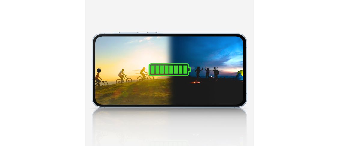 De Samsung Galaxy A55 is voorzien van een sterke batterij die de hele dag meegaat. Zo blijf je de hele dag door verbonden, zonder onderbrekingen. De batterij heeft een capaciteit van 5.000 mAh en is binnen 30 minuten al tot maar liefst 50% opgeladen. Hierdoor zit je niet uren vast aan het stopcontact en kun je snel door met waar je mee bezig was. Ideaal voor als je onderweg bent en binnen korte tijd weer op pad wilt met een opgeladen smartphone.